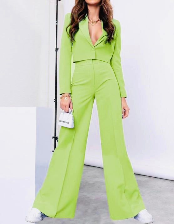 Long Sleeve Suit High Waisted Wide Pants Set.