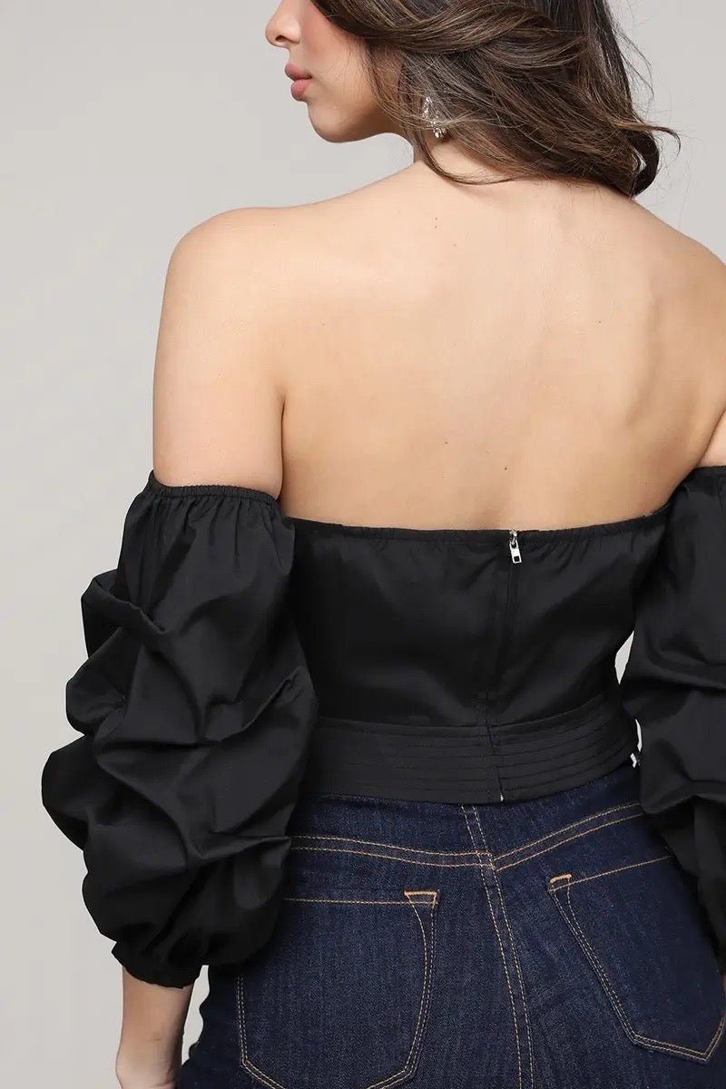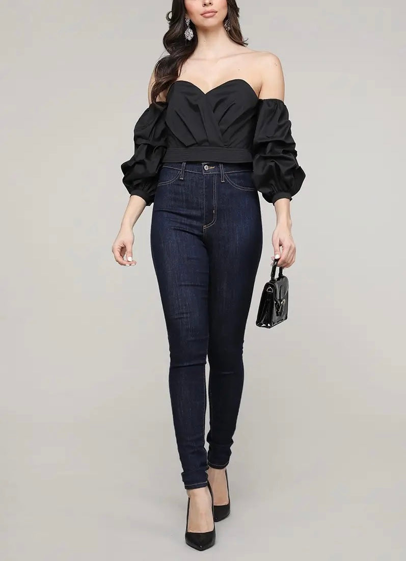 Pair this solid off-shoulder sweetheart crop top with your favorite jeans, pants, or skirt!